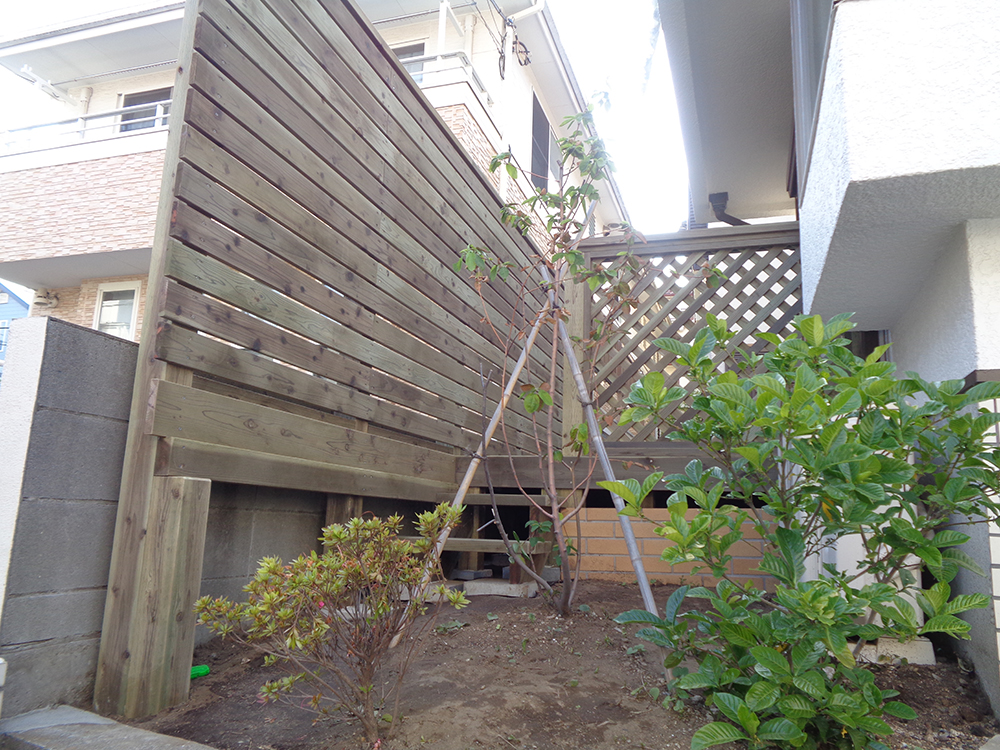 お庭の段差を解消!目隠しフェンスで周囲の視線をシャットアウト!