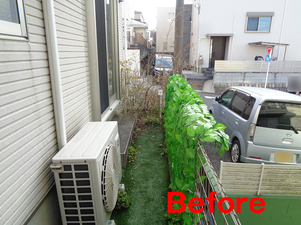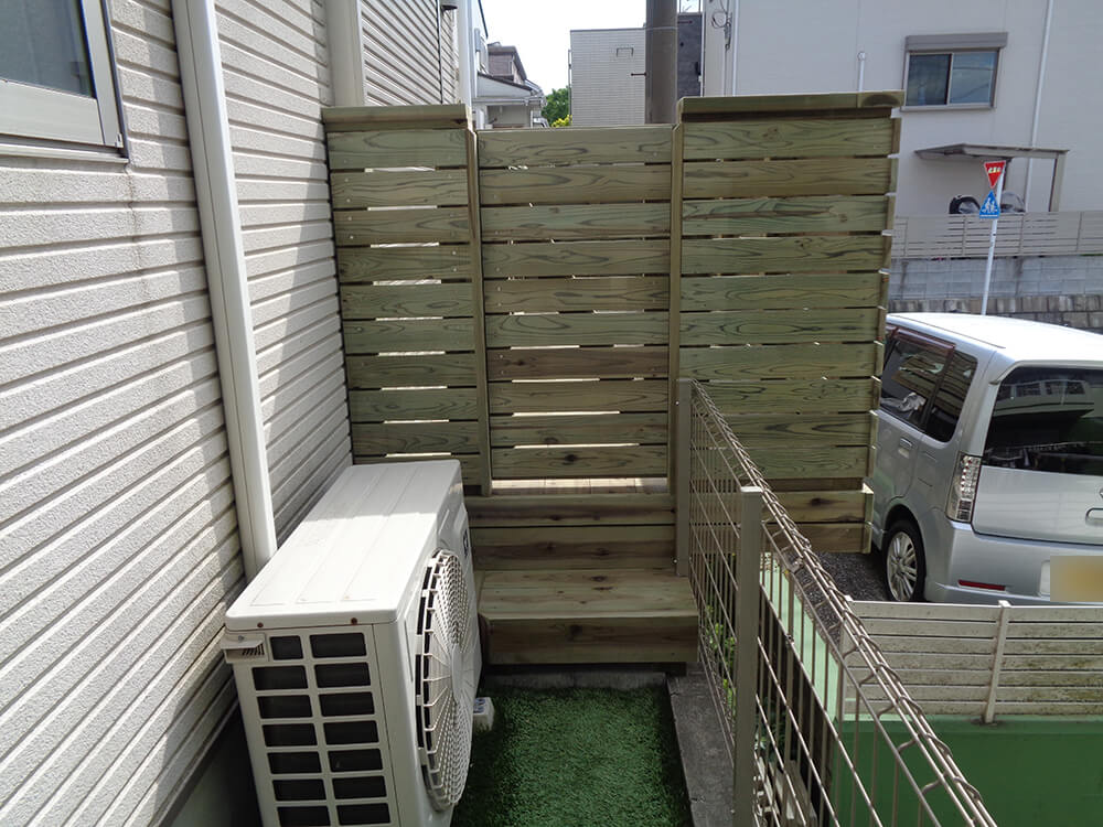 リビング掃き出し窓前がアパートの駐車場になっており、人の出入りが多く視線が気になっていたそうですが、ウッドフェンスが目隠しとなり窓やカーテンを開けても気にならなくなりました。