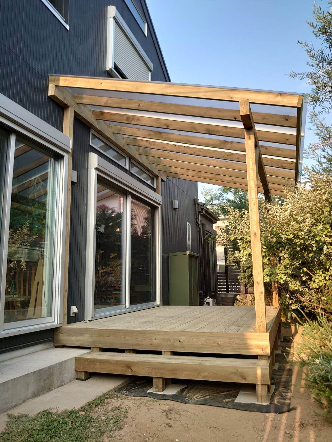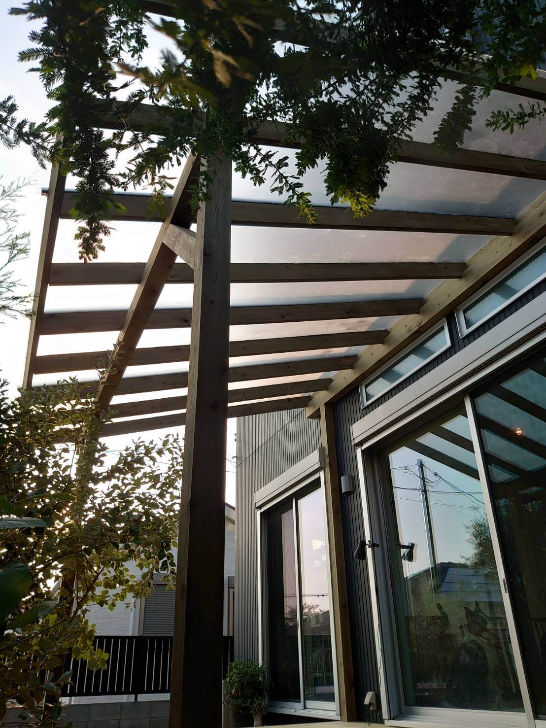 パーゴラにポリカーボネート屋根付きです。